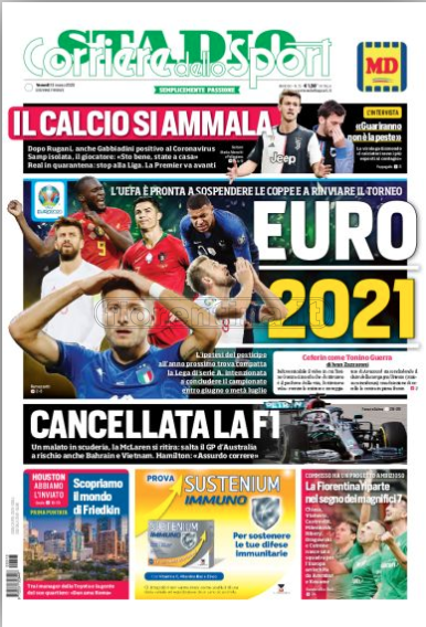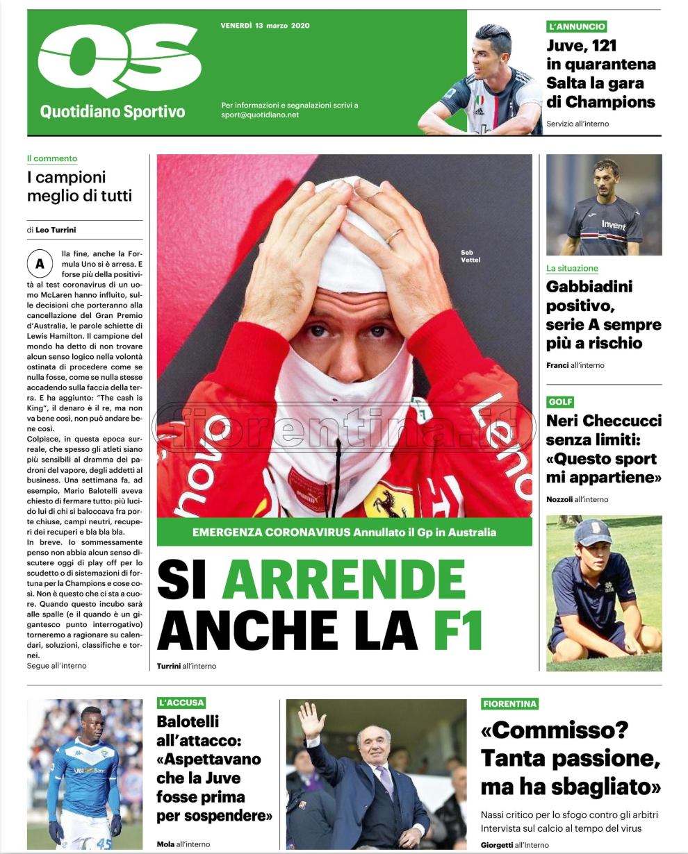 Queste le prime pagine dei quotidiani di Corriere dello Sport, Corriere dello Sport Stadio, Qs-La Nazione, Tuttosport e Gazzetta dello Sport in edicola questa mattina:
