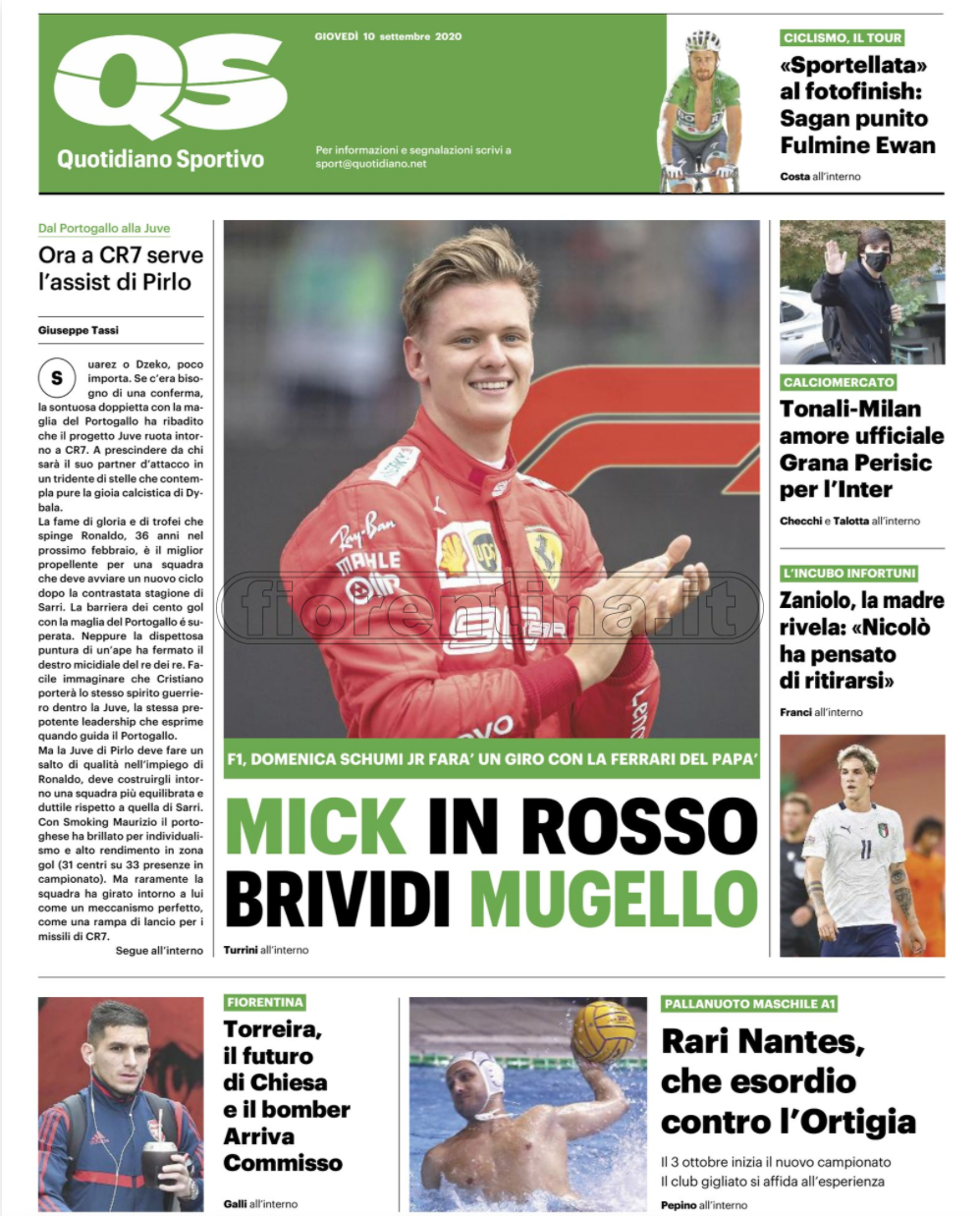 Queste le prime pagine dei quotidiani di Corriere dello Sport, Corriere dello Sport Stadio, Qs-La Nazione, Tuttosport e Gazzetta dello Sport in edicola questa mattina: