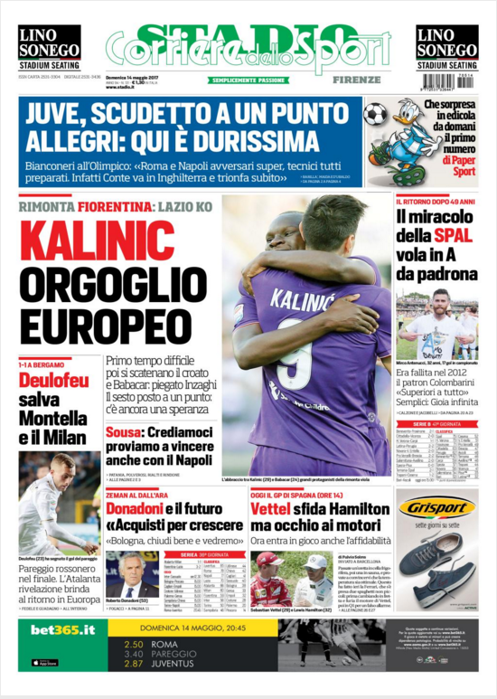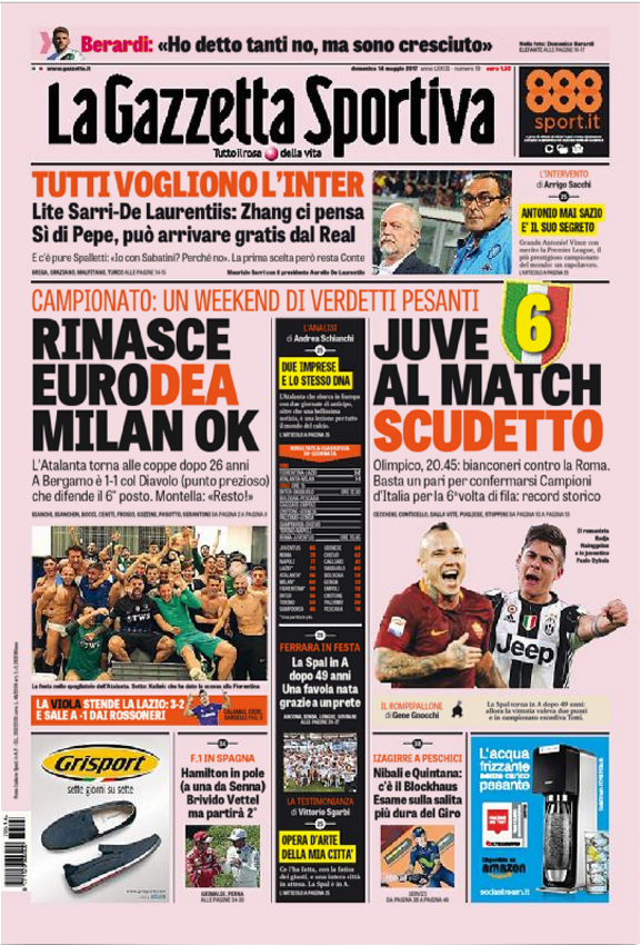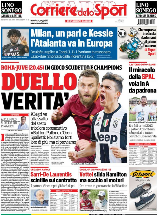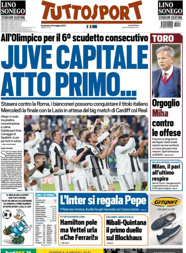 Queste le prime pagine dei quotidiani di Corriere dello Sport, Corriere dello Sport Stadio, Qs, Tuttosport e Gazzetta in edicola questa mattina: