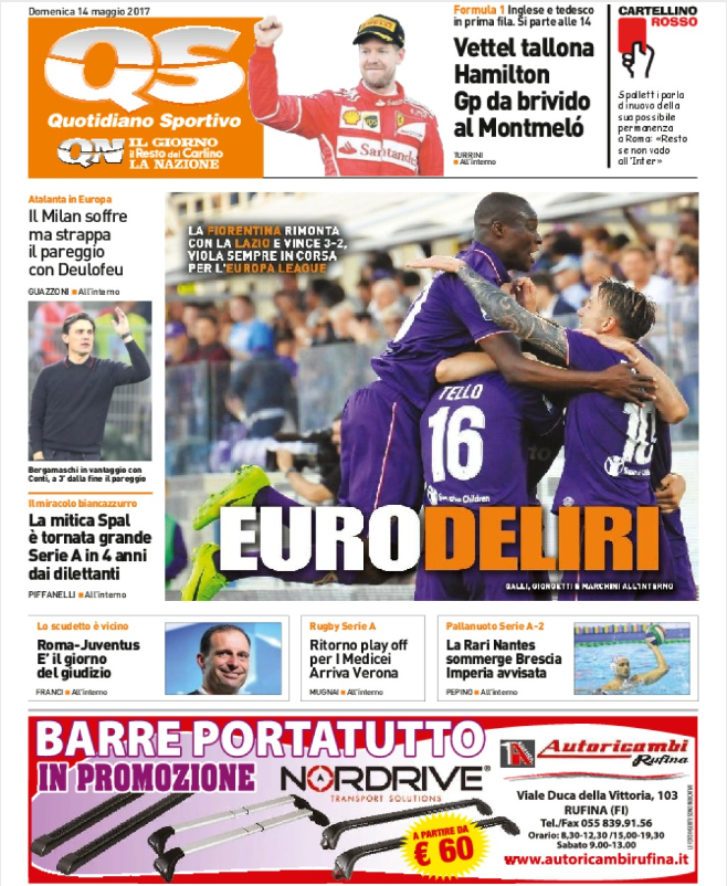 Quotidiani: la prima pagina di Qs, Stadio, Gazzetta, Corriere dello Sport, Tuttosport