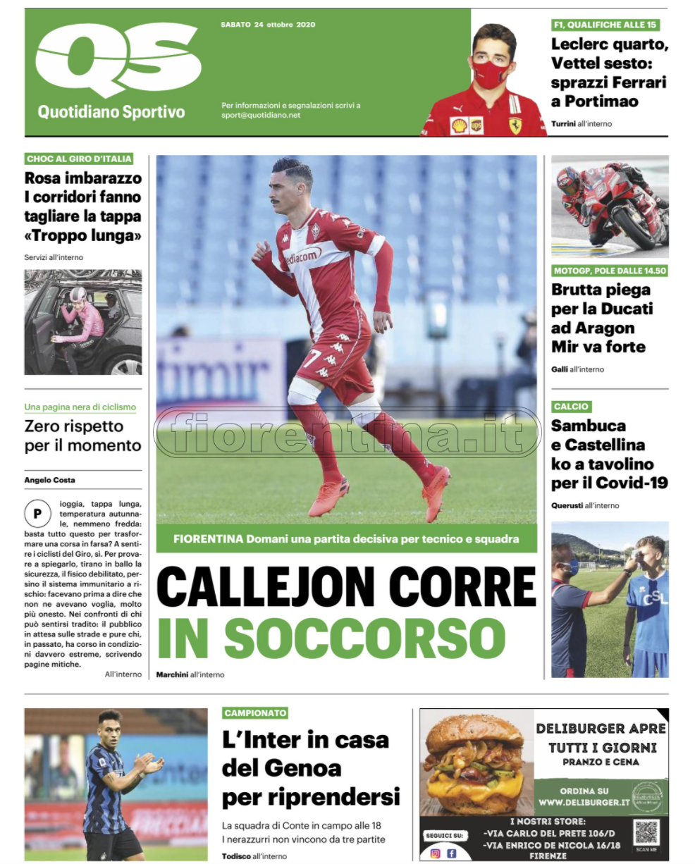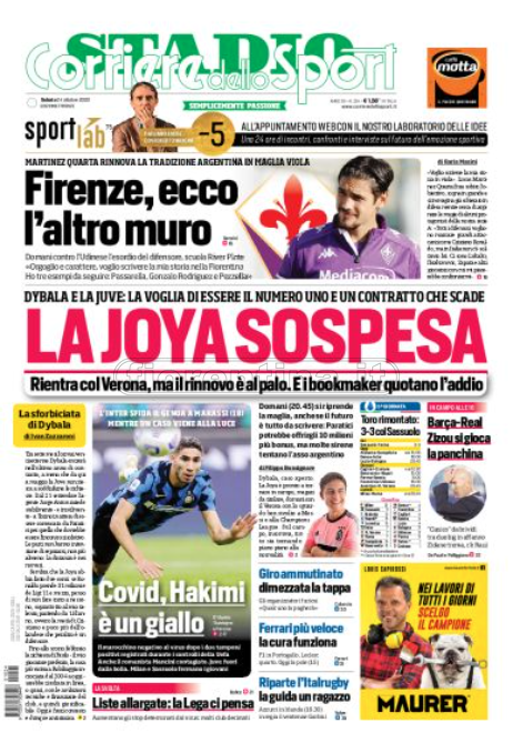Queste le prime pagine dei quotidiani di Corriere dello Sport, Corriere dello Sport Stadio, Qs-La Nazione, Tuttosport e Gazzetta dello Sport in edicola questa mattina: