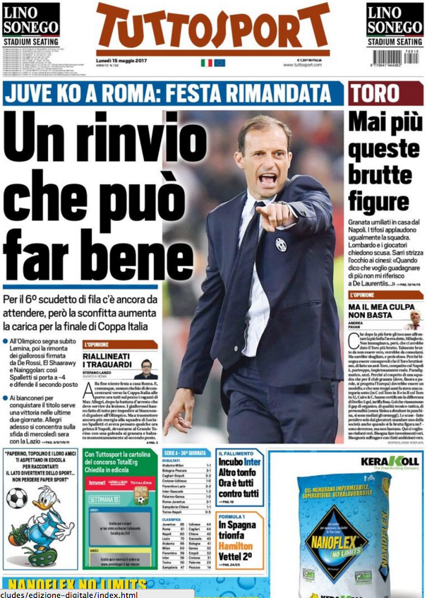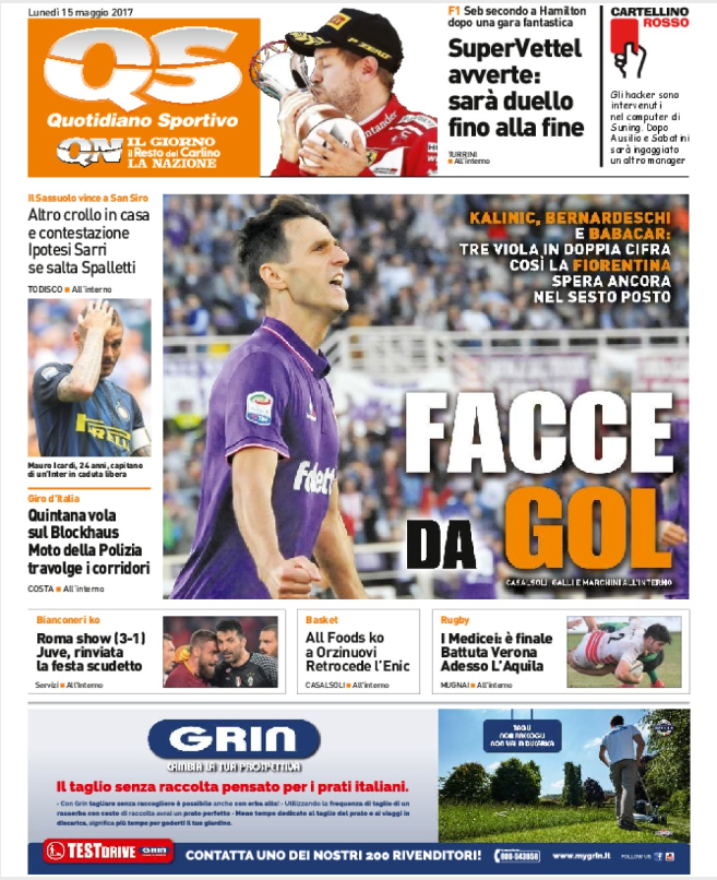 Queste le prime pagine dei quotidiani di Corriere dello Sport, Corriere dello Sport Stadio, Qs, Tuttosport e Gazzetta in edicola questa mattina: