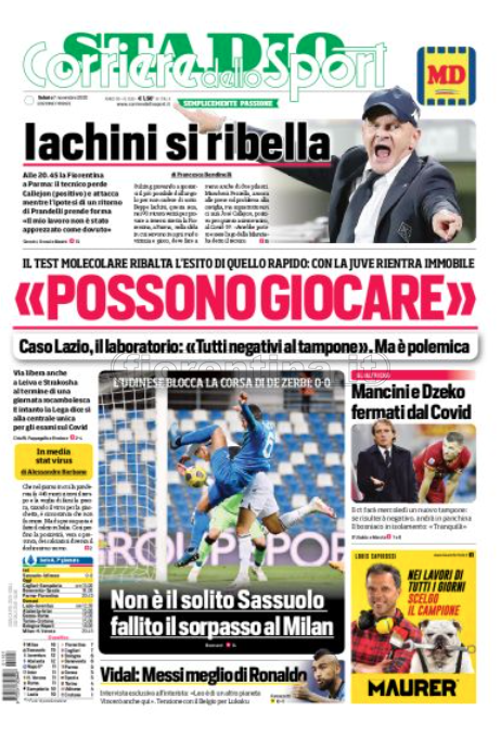 Queste le prime pagine dei quotidiani di Corriere dello Sport, Corriere dello Sport Stadio, Qs-La Nazione, Tuttosport e Gazzetta dello Sport in edicola questa mattina: