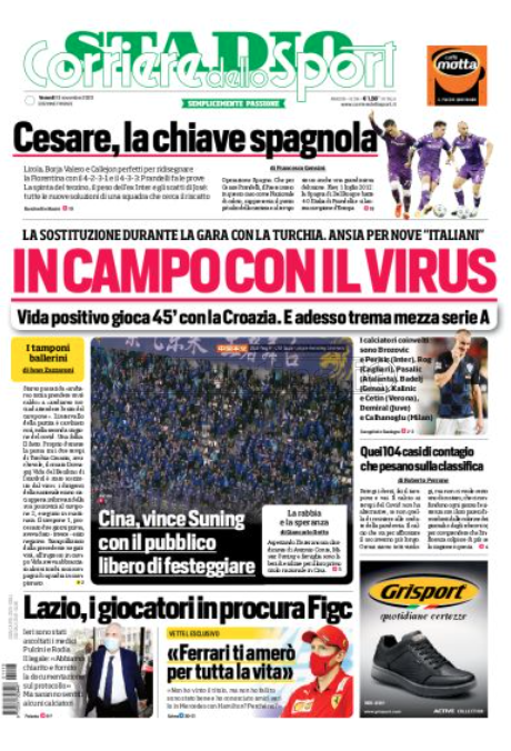 Queste le prime pagine dei quotidiani di Corriere dello Sport, Corriere dello Sport Stadio, Qs-La Nazione, Tuttosport e Gazzetta dello Sport in edicola questa mattina: