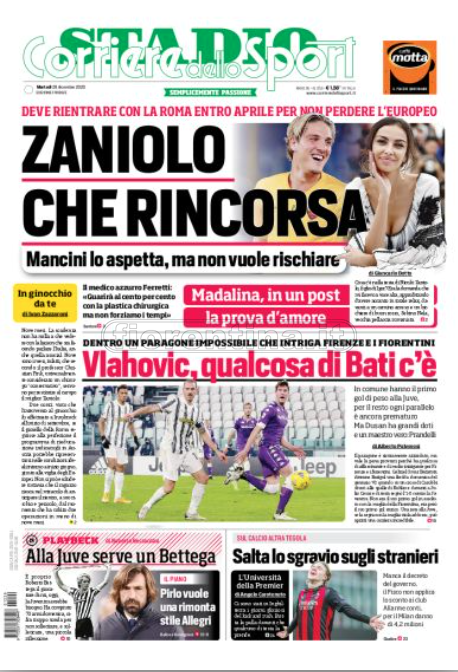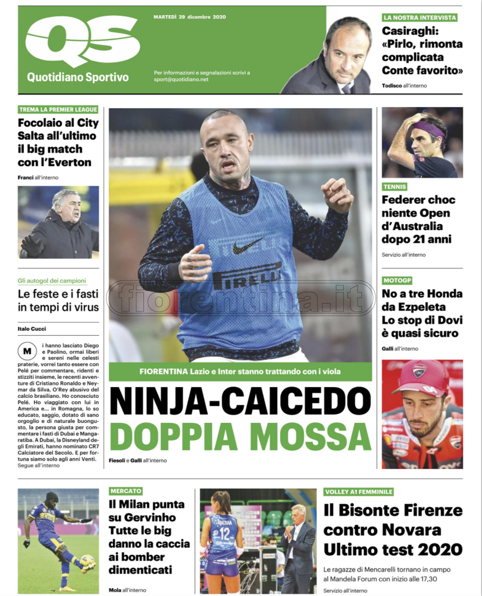 Queste le prime pagine dei quotidiani di Corriere dello Sport, Corriere dello Sport Stadio, Qs-La Nazione, Tuttosport e Gazzetta dello Sport in edicola questa mattina:
