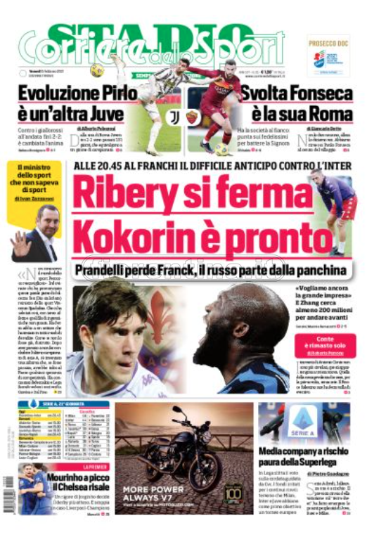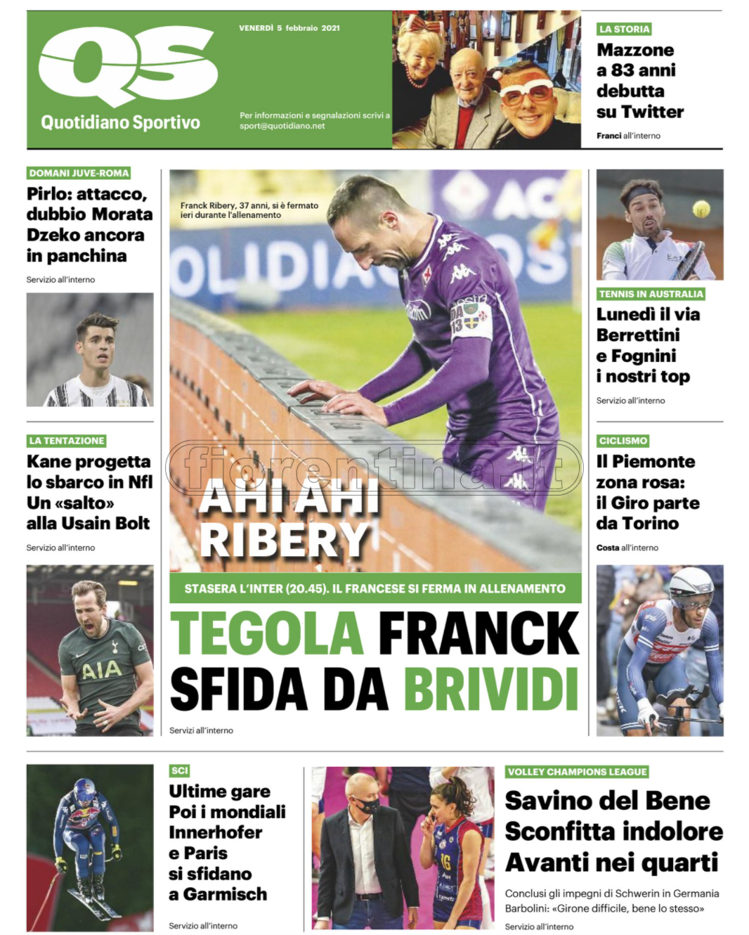 Queste le prime pagine dei quotidiani di Corriere dello Sport, Corriere dello Sport Stadio, Qs-La Nazione, Tuttosport e Gazzetta dello Sport in edicola questa mattina: