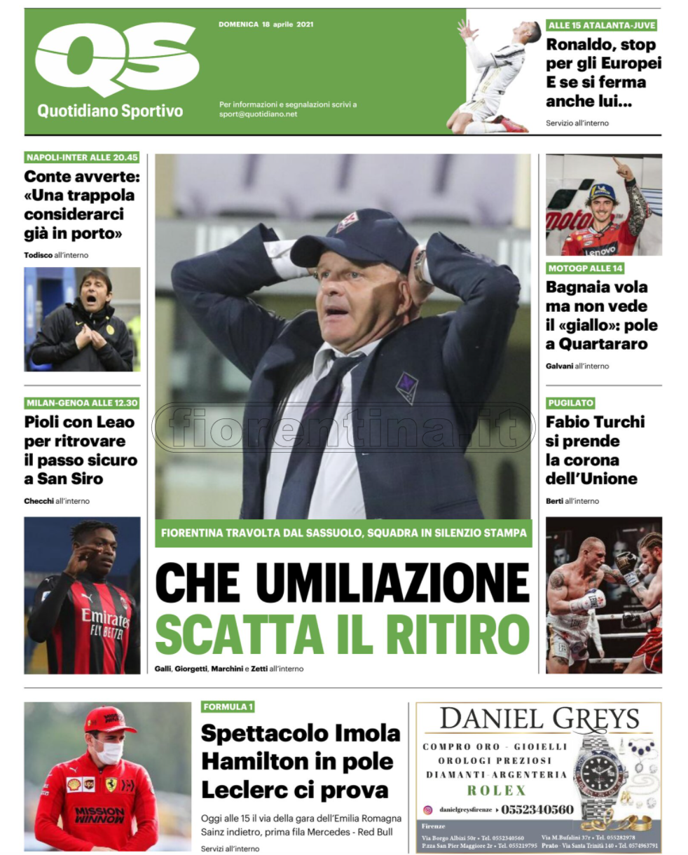 Queste le prime pagine dei quotidiani di Corriere dello Sport, Corriere dello Sport Stadio, Qs-La Nazione, Tuttosport e Gazzetta dello Sport in edicola questa mattina:
