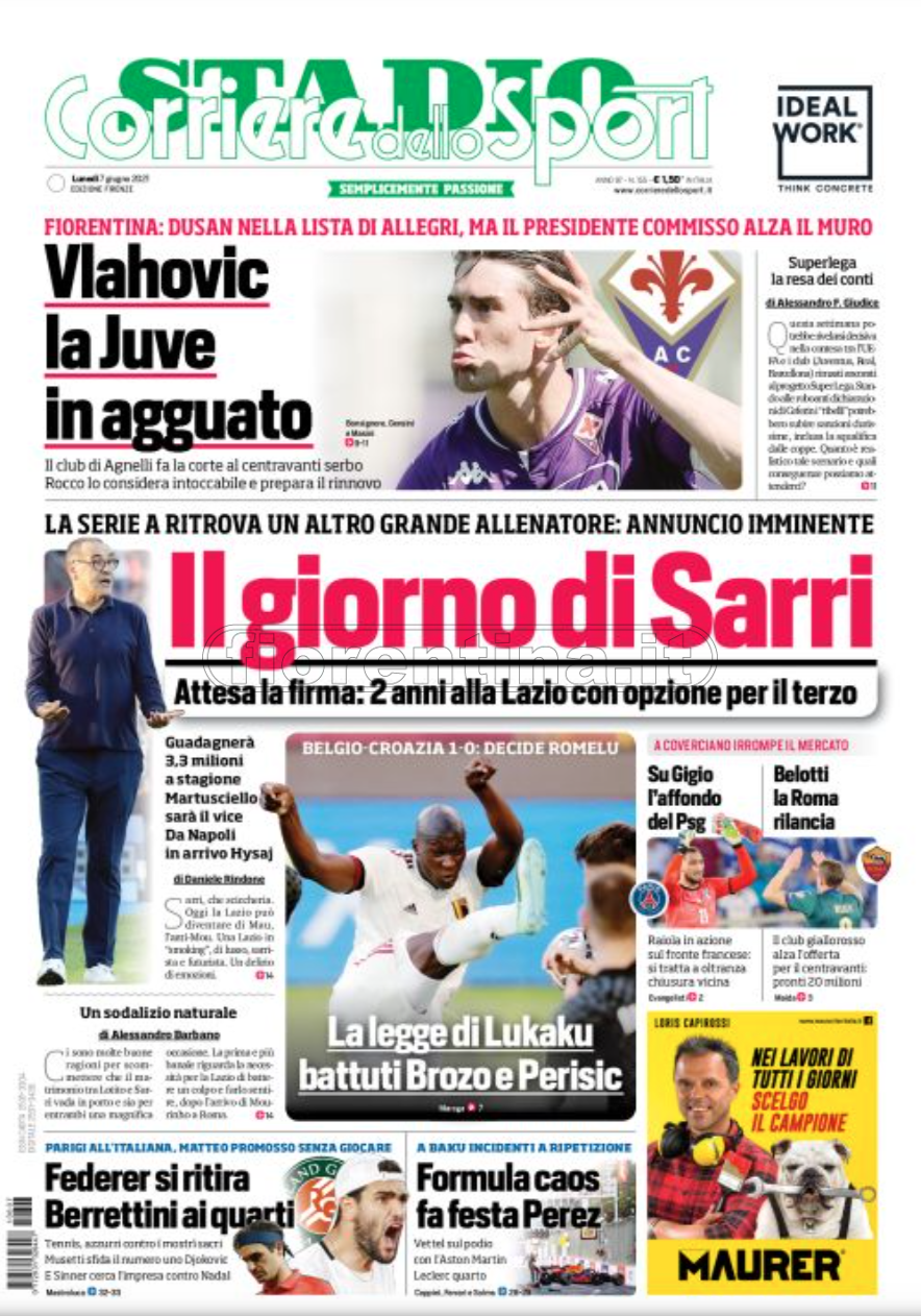 Queste le prime pagine dei quotidiani di Corriere dello Sport, Corriere dello Sport Stadio, Qs-La Nazione, Tuttosport e Gazzetta dello Sport in edicola questa mattina: