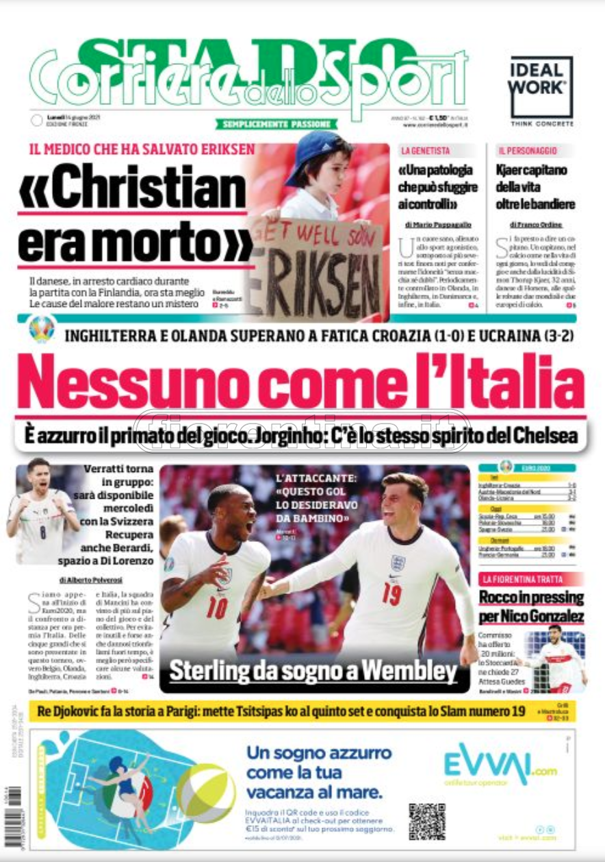 Queste le prime pagine dei quotidiani di Corriere dello Sport, Corriere dello Sport Stadio, Qs-La Nazione, Tuttosport e Gazzetta dello Sport in edicola questa mattina: