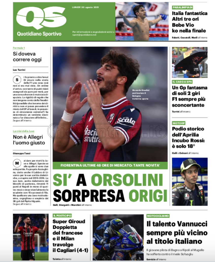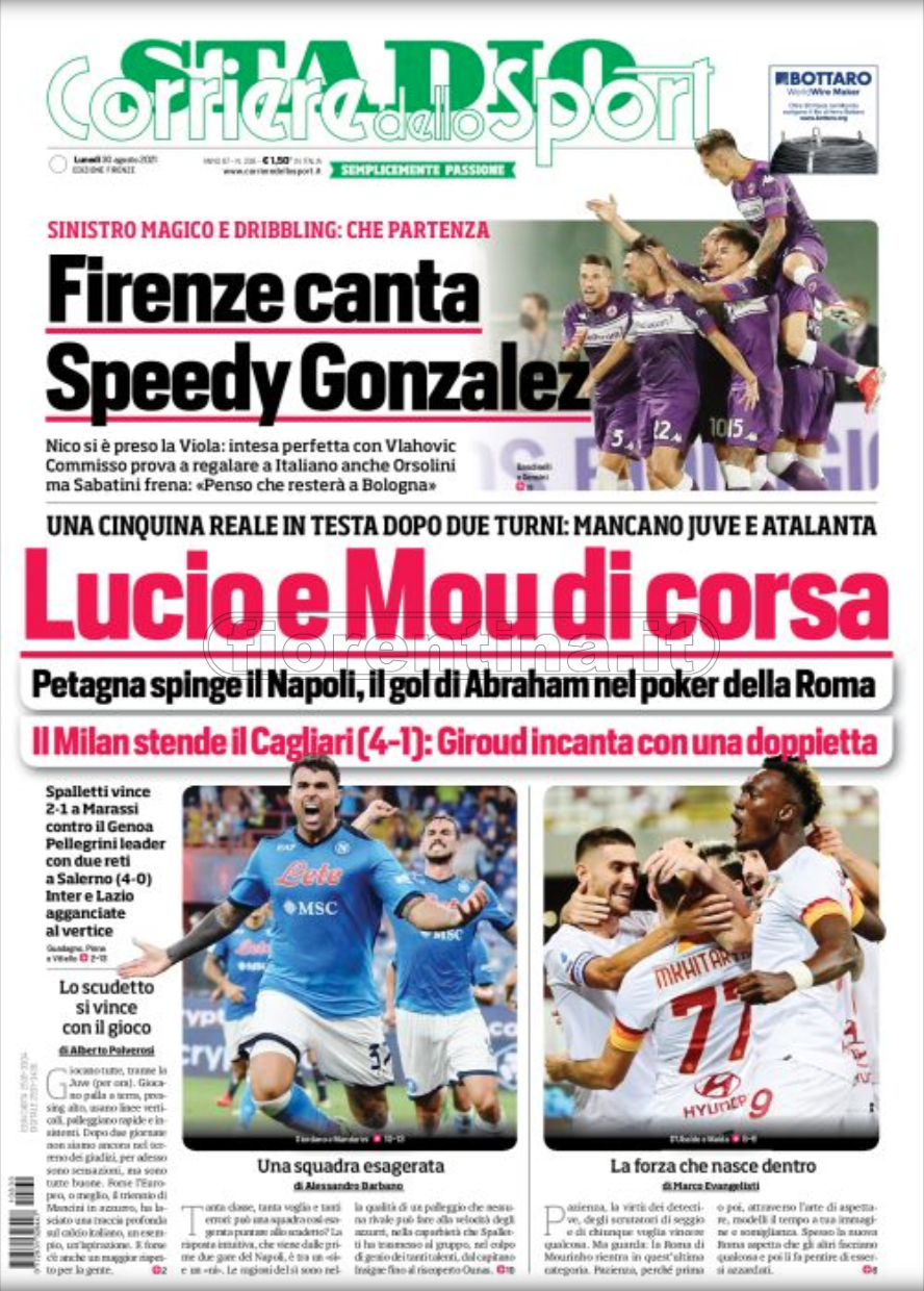 Queste le prime pagine dei quotidiani di Corriere dello Sport, Corriere dello Sport Stadio, Qs-La Nazione, Tuttosport e Gazzetta dello Sport in edicola questa mattina:
