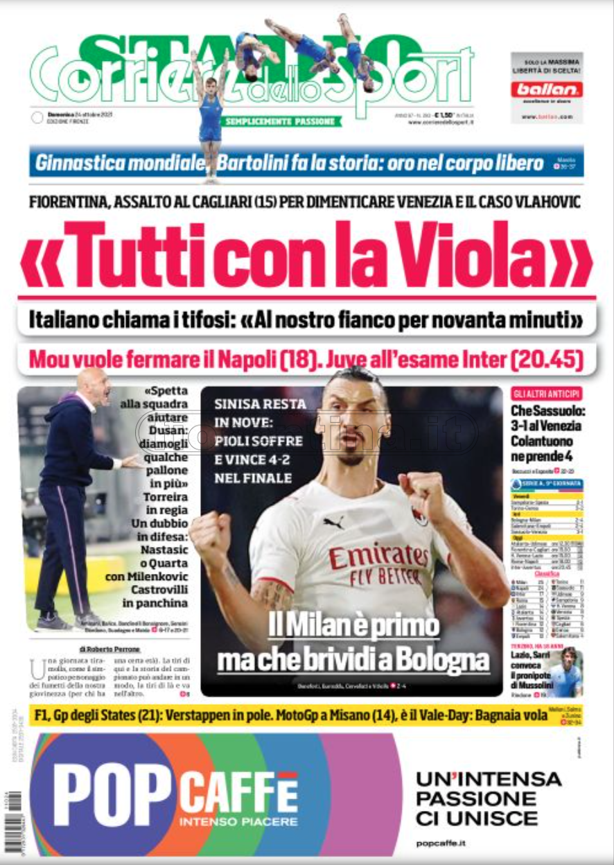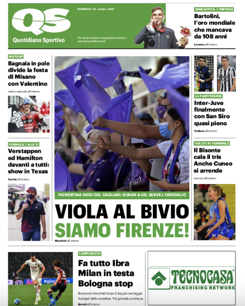 Queste le prime pagine dei quotidiani di Corriere dello Sport, Corriere dello Sport Stadio, Qs-La Nazione, Tuttosport e Gazzetta dello Sport in edicola questa mattina:
