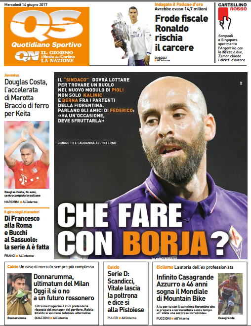 Queste le prime pagine dei quotidiani di Corriere dello Sport, Corriere dello Sport Stadio, Qs, Tuttosport e Gazzetta in edicola questa mattina: