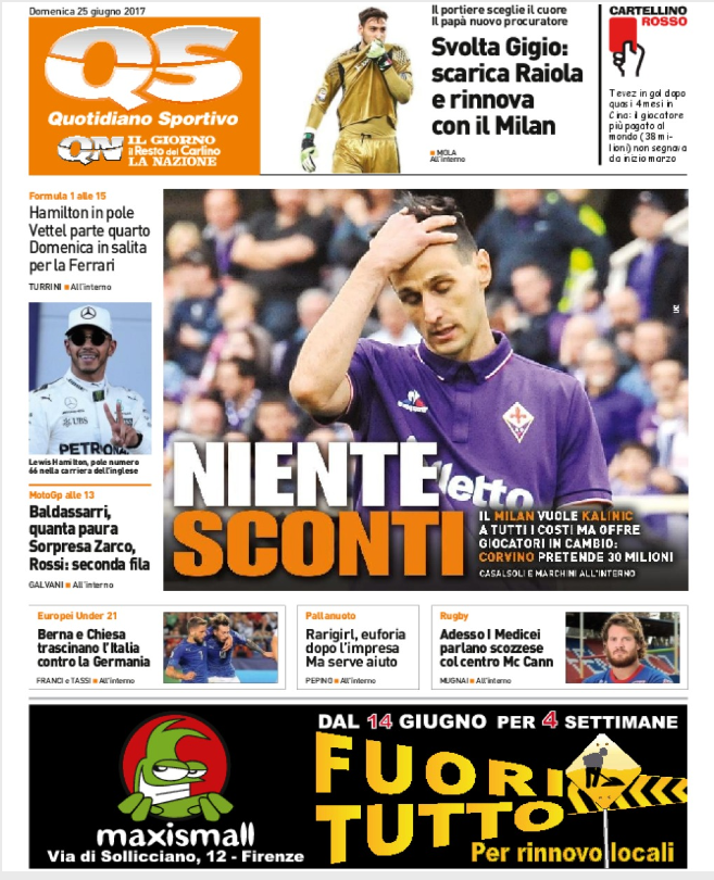 Queste le prime pagine dei quotidiani di Corriere dello Sport, Corriere dello Sport Stadio, Qs, Tuttosport e Gazzetta in edicola questa mattina: