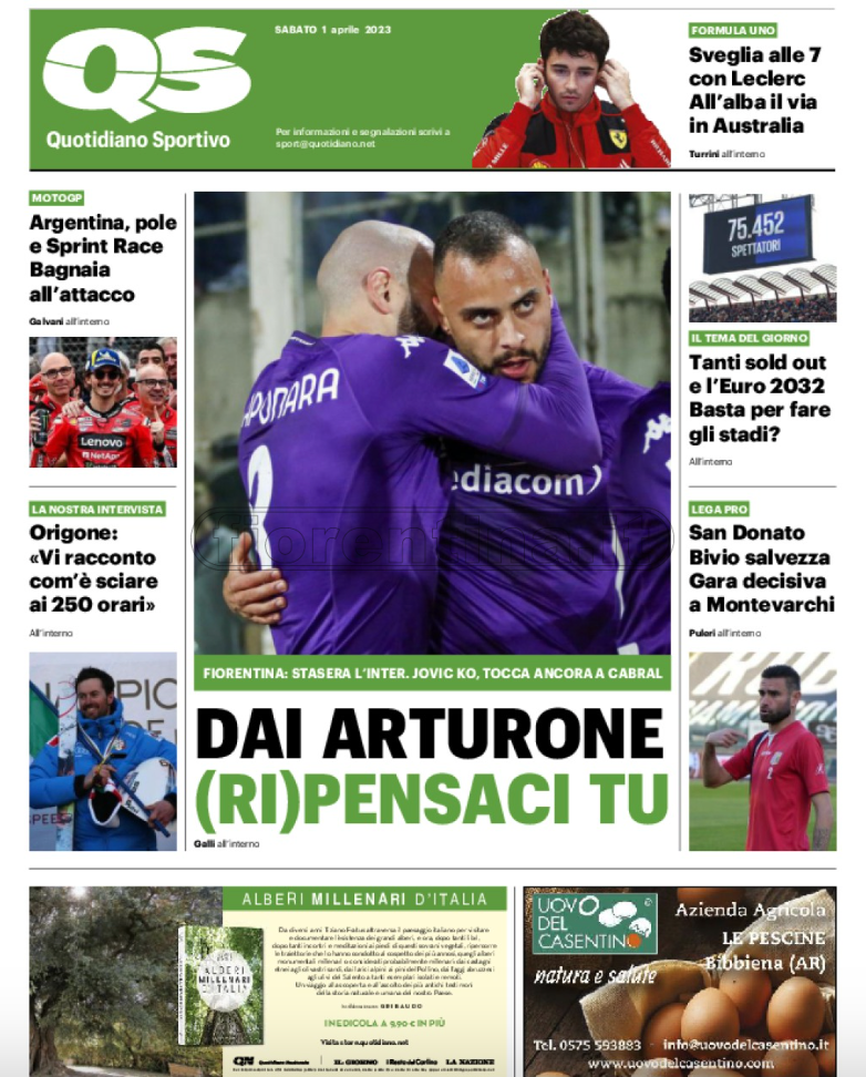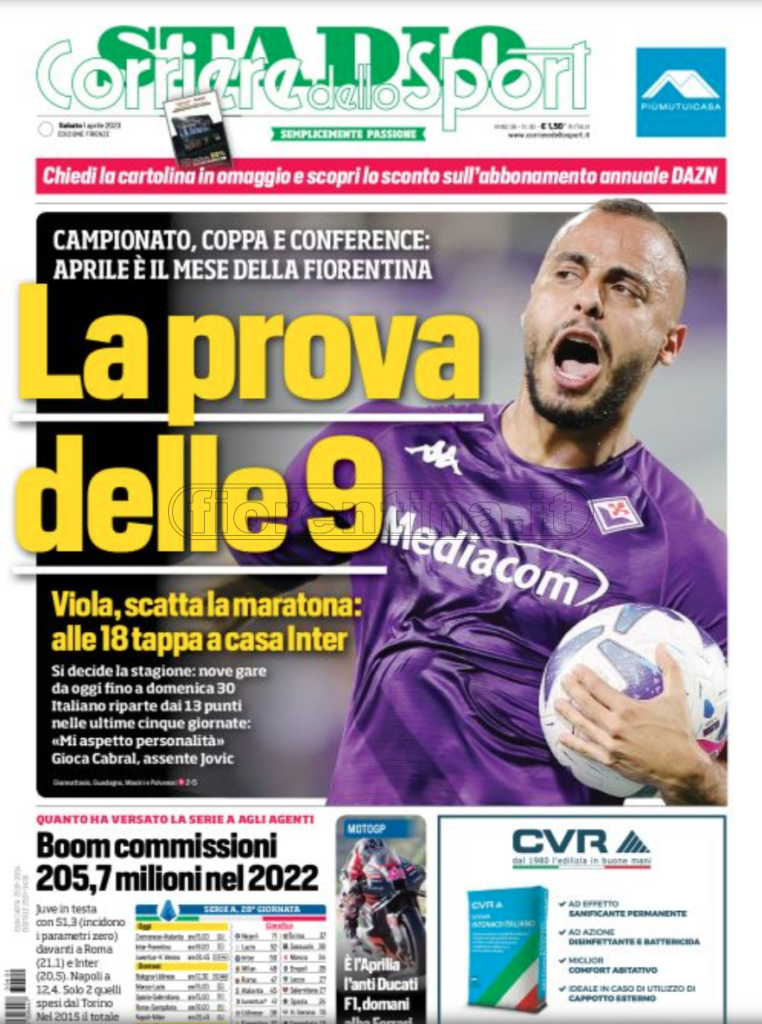 Queste le prime pagine dei quotidiani di Corriere dello Sport, Corriere dello Sport Stadio, Qs-La Nazione, Tuttosport e Gazzetta dello Sport in edicola questa mattina: