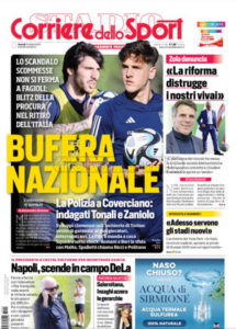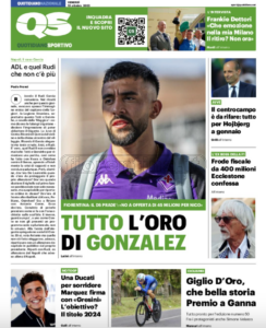 Queste le prime pagine dei quotidiani di Corriere dello Sport, Corriere dello Sport Stadio, Qs-La Nazione, Tuttosport e Gazzetta dello Sport in edicola questa mattina