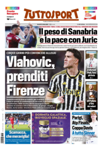 Queste le prime pagine dei quotidiani di Corriere dello Sport, Corriere dello Sport Stadio, Qs-La Nazione, Tuttosport e Gazzetta dello Sport in edicola questa mattina: