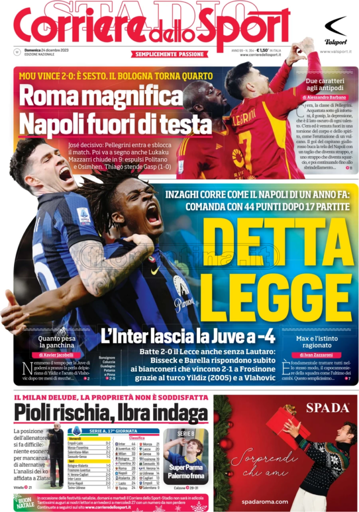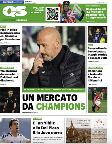 Queste le prime pagine dei quotidiani di Corriere dello Sport, Corriere dello Sport Stadio, Qs-La Nazione, Tuttosport e Gazzetta dello Sport in edicola questa mattina: