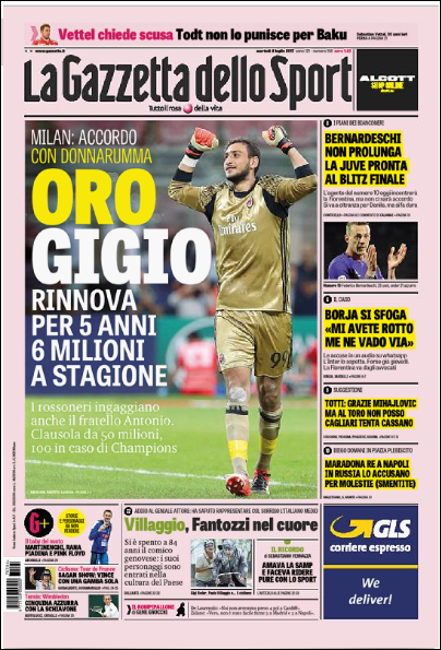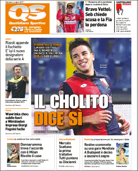 Queste le prime pagine dei quotidiani di Corriere dello Sport, Corriere dello Sport Stadio, Qs, Tuttosport e Gazzetta in edicola questa mattina:
