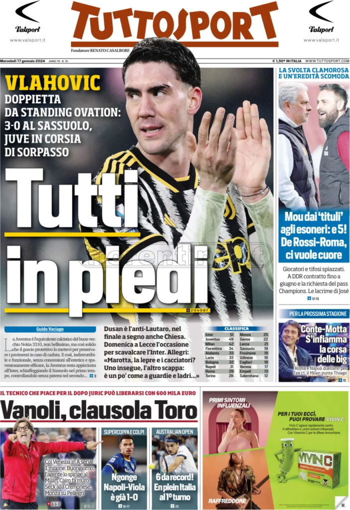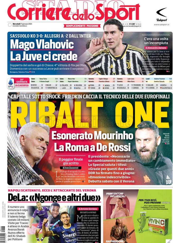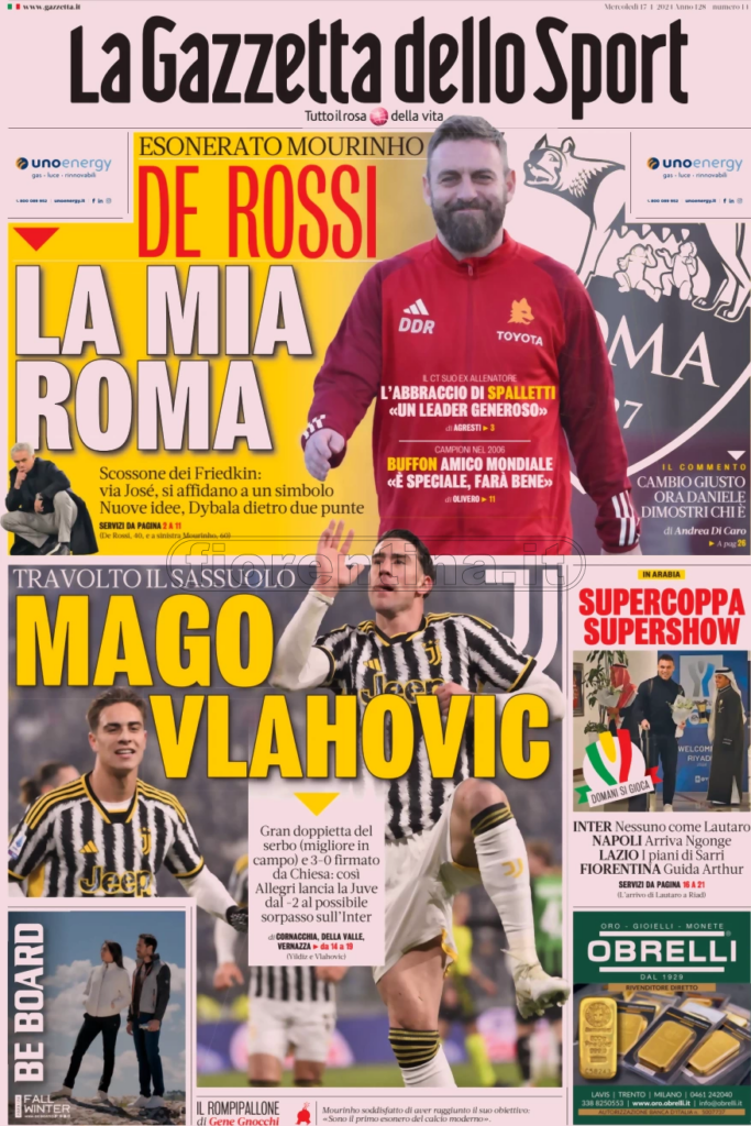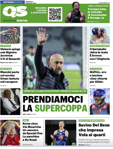 Queste le prime pagine dei quotidiani di Corriere dello Sport Stadio, Qs-La Nazione, Tuttosport e Gazzetta dello Sport in edicola questa mattina: