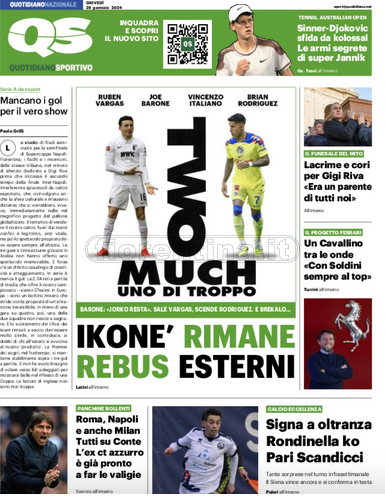Queste le prime pagine dei quotidiani di Corriere dello Sport Stadio, Qs-La Nazione, Tuttosport e Gazzetta dello Sport in edicola questa mattina: