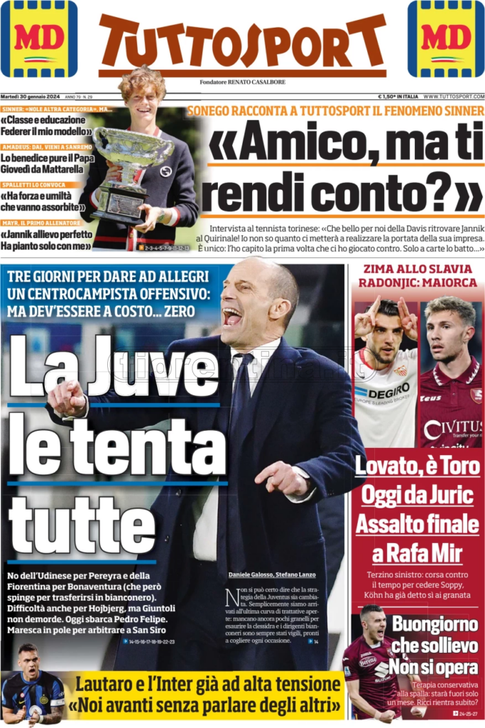 Queste le prime pagine dei quotidiani di Corriere dello Sport Stadio, Qs-La Nazione, Tuttosport e Gazzetta dello Sport in edicola questa mattina: