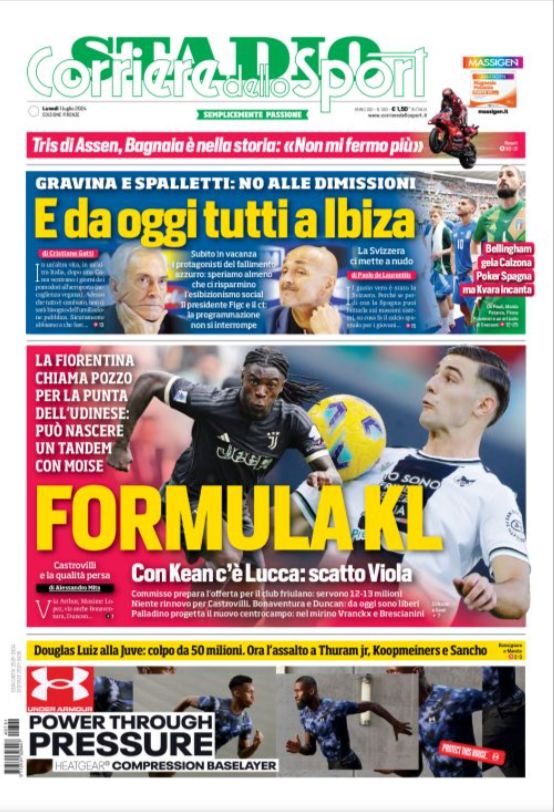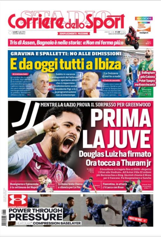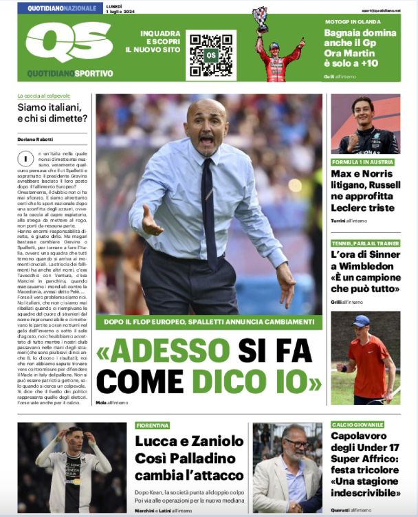 Quotidiani: la prima pagina di Qs, Stadio, Gazzetta, Corriere dello Sport, Tuttosport