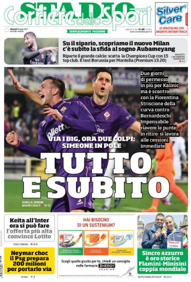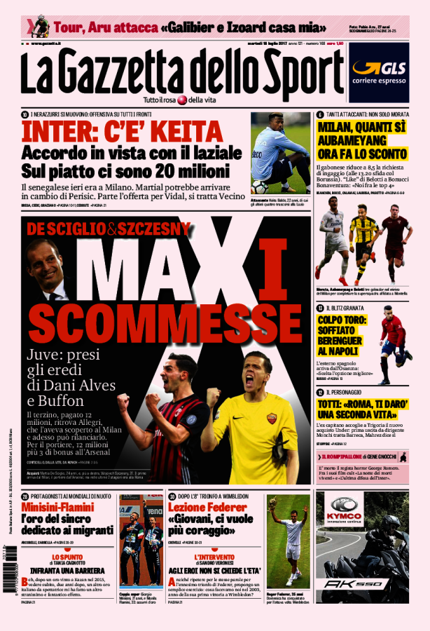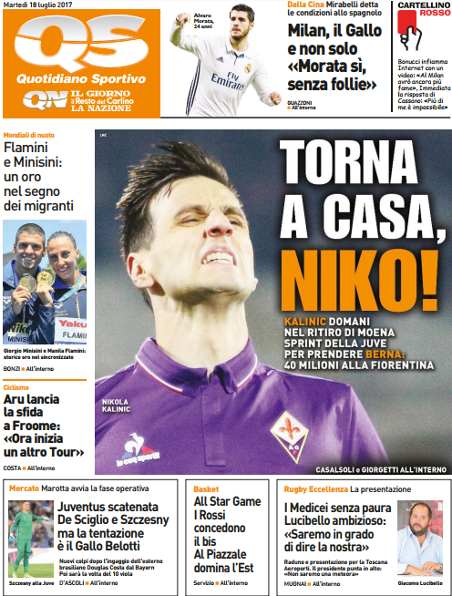 Queste le prime pagine dei quotidiani di Corriere dello Sport, Corriere dello Sport Stadio, Qs, Tuttosport e Gazzetta in edicola questa mattina: