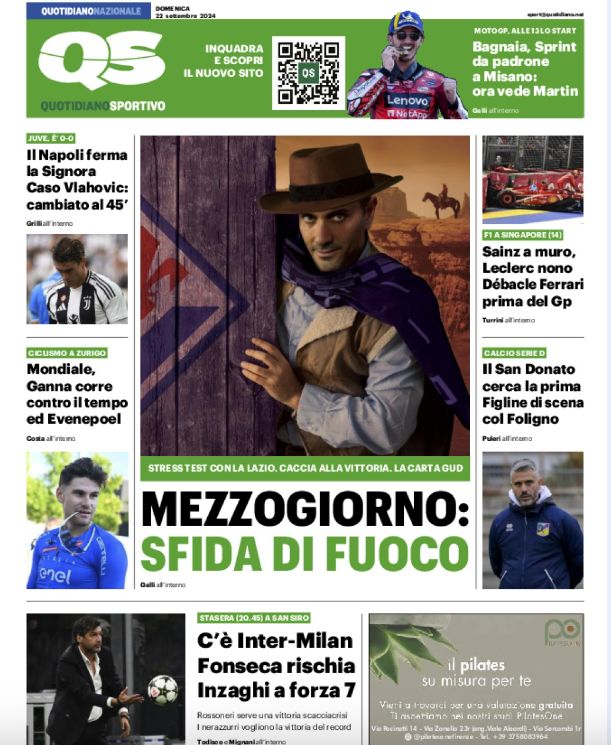 Queste le prime pagine dei quotidiani di Corriere dello Sport Stadio, Qs-La Nazione, Tuttosport e Gazzetta dello Sport in edicola questa mattina