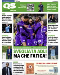 Queste le prime pagine dei quotidiani di Corriere dello Sport Stadio, Qs-La Nazione, Tuttosport e Gazzetta dello Sport in edicola questa mattina
