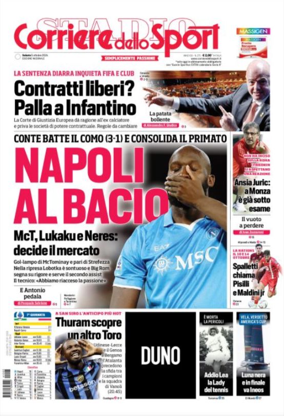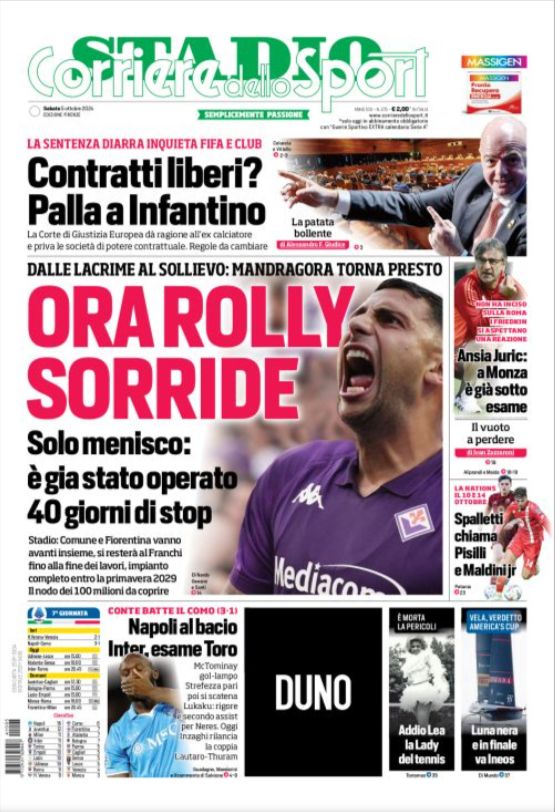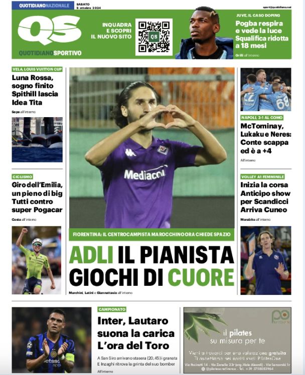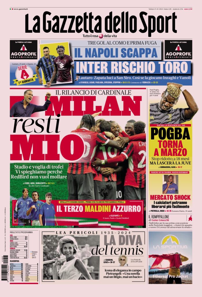 Queste le prime pagine dei quotidiani di Corriere dello Sport Stadio, Qs-La Nazione, Tuttosport e Gazzetta dello Sport in edicola questa mattina