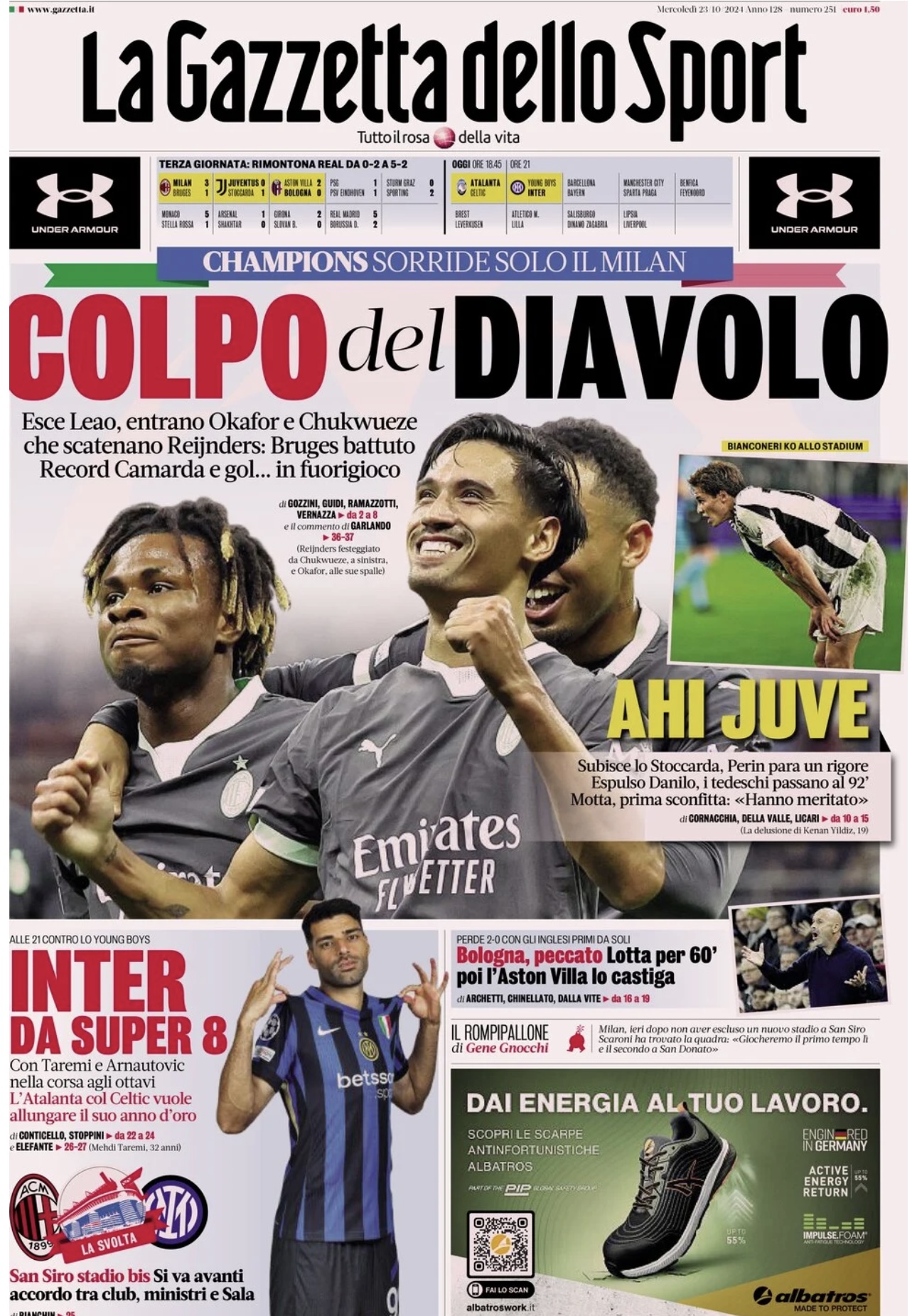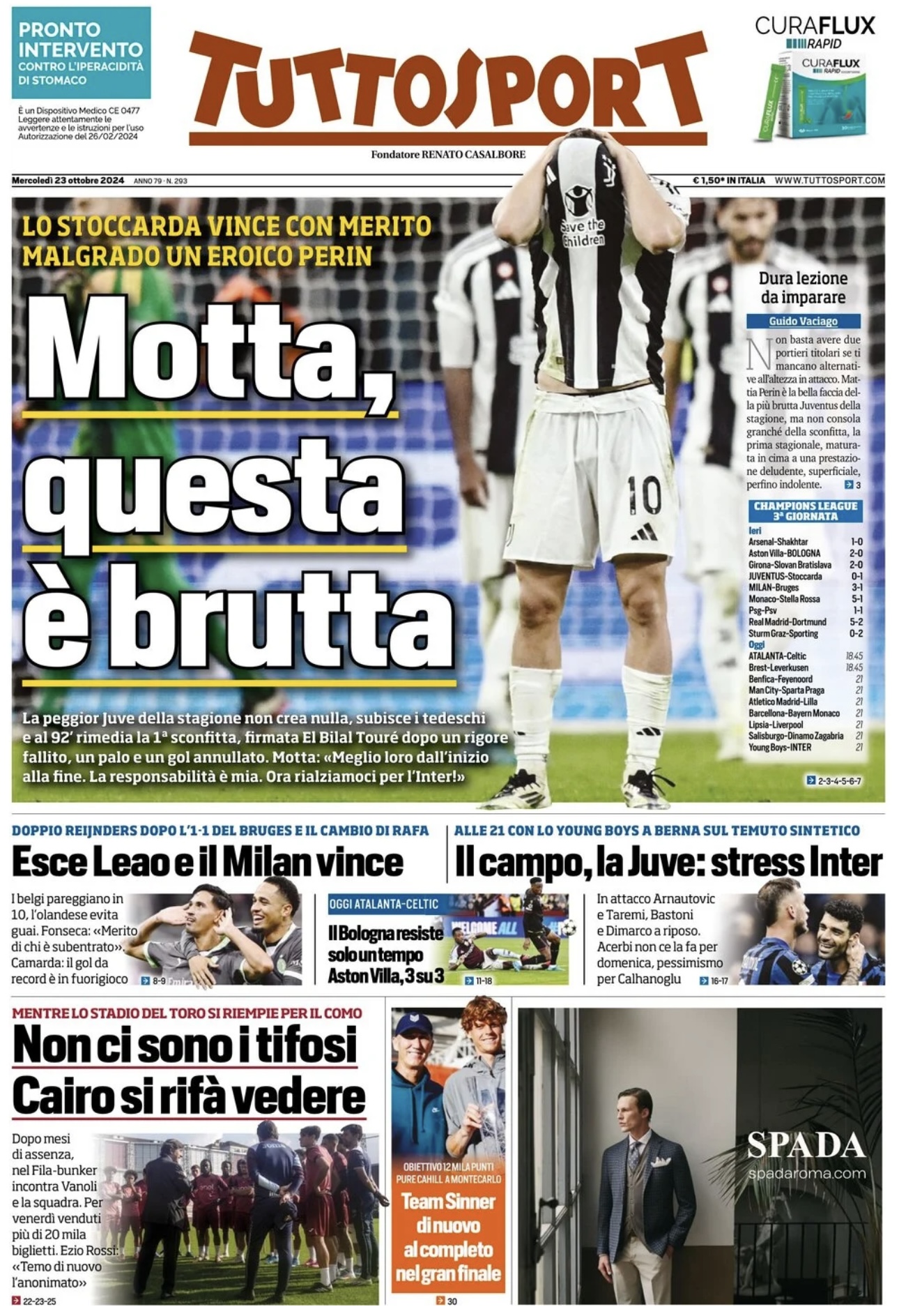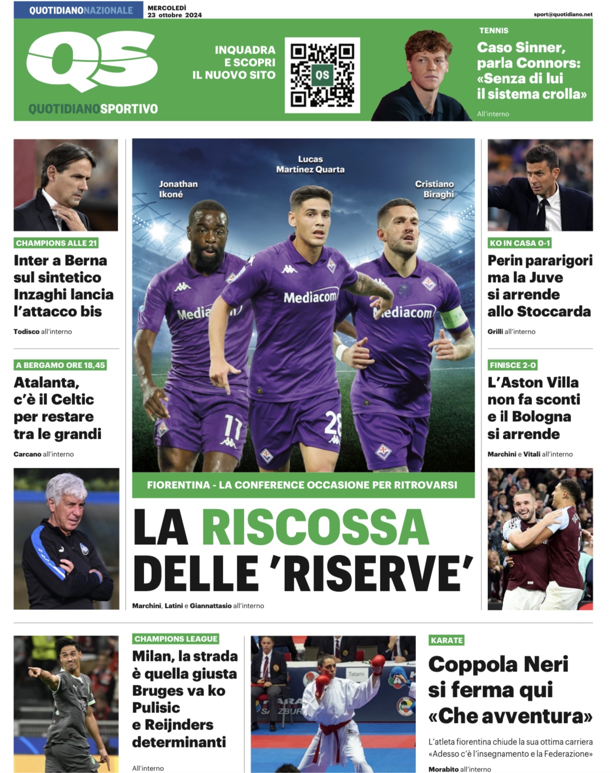 Quotidiani: la prima pagina di Qs, Stadio, Gazzetta, Corriere dello Sport, Tuttosport