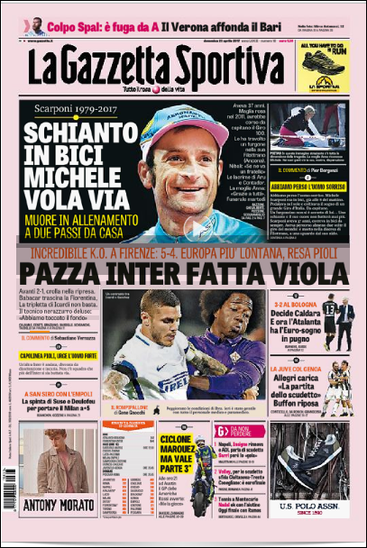 Queste le prime pagine dei quotidiani di Corriere dello Sport, Corriere dello Sport Stadio, Qs, Tuttosport e Gazzetta in edicola questa mattina: