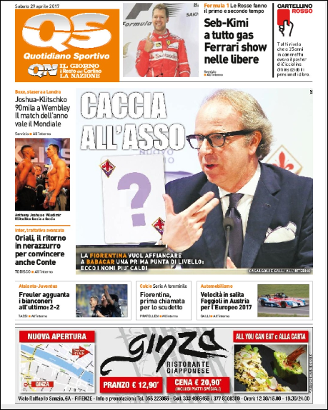 Queste le prime pagine dei quotidiani di Corriere dello Sport, Corriere dello Sport Stadio, Qs, Tuttosport e Gazzetta in edicola questa mattina: