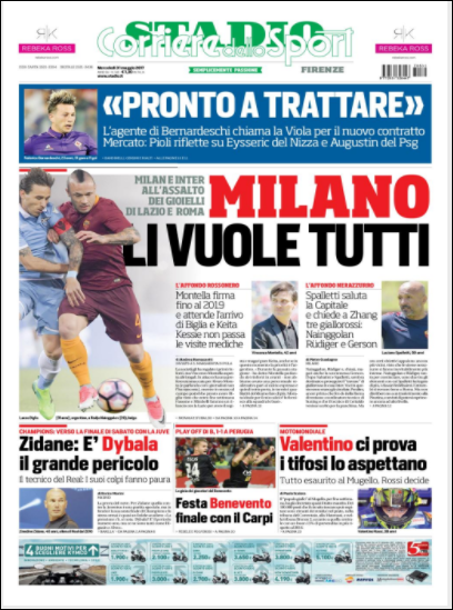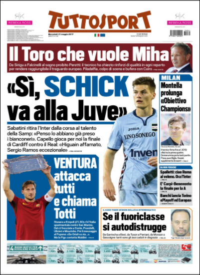 Queste le prime pagine dei quotidiani di Corriere dello Sport, Corriere dello Sport Stadio, Qs, Tuttosport e Gazzetta in edicola questa mattina: