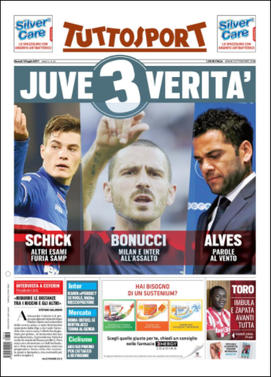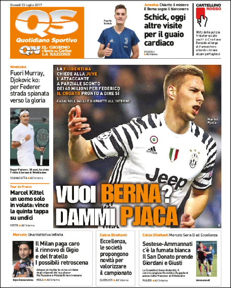 Queste le prime pagine dei quotidiani di Corriere dello Sport, Corriere dello Sport Stadio, Qs, Tuttosport e Gazzetta in edicola questa mattina: