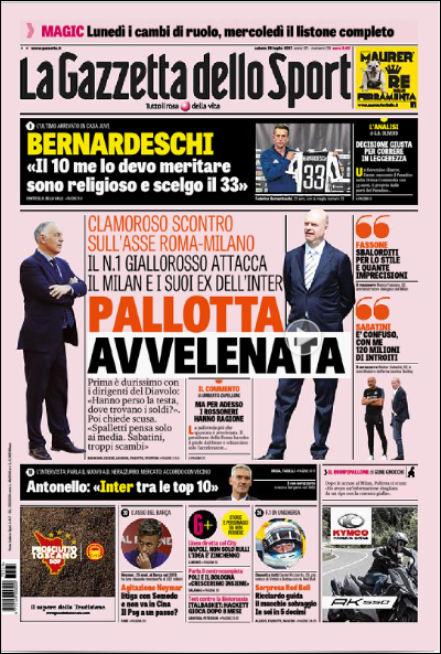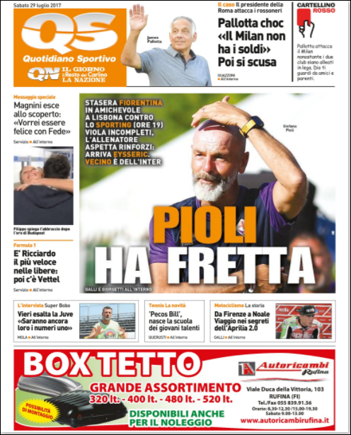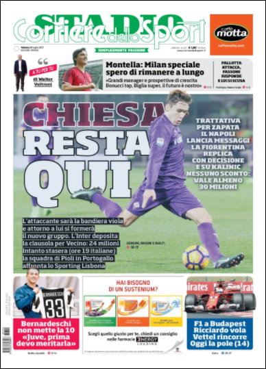 Queste le prime pagine dei quotidiani di Corriere dello Sport, Corriere dello Sport Stadio, Qs, Tuttosport e Gazzetta in edicola questa mattina:
