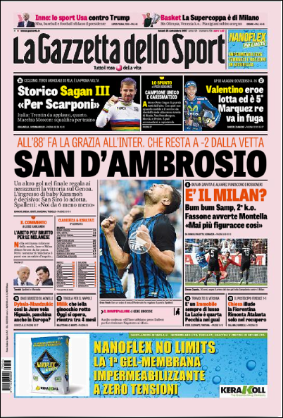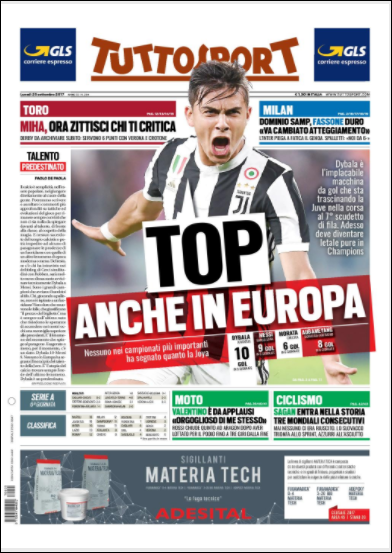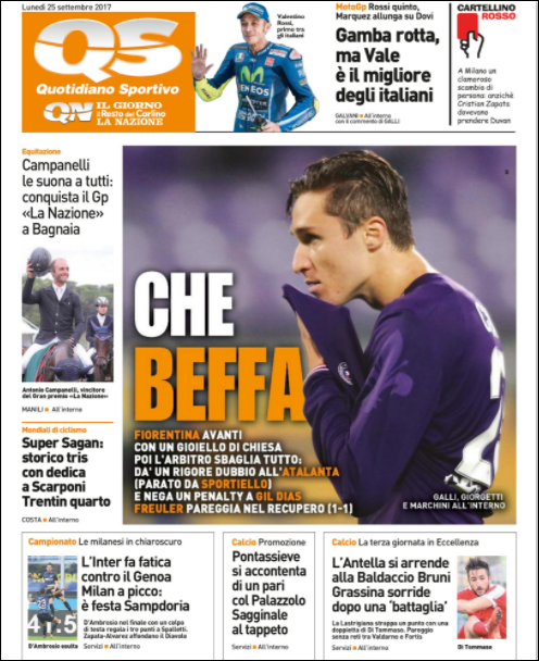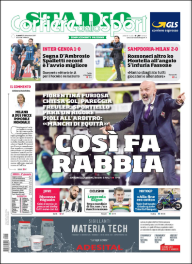 Queste le prime pagine dei quotidiani di Corriere dello Sport, Corriere dello Sport Stadio, Qs-La Nazione, Tuttosport e Gazzetta dello Sport in edicola questa mattina: