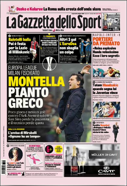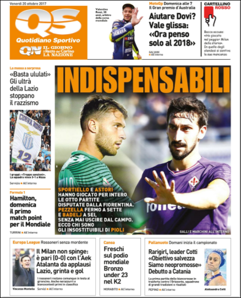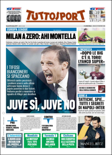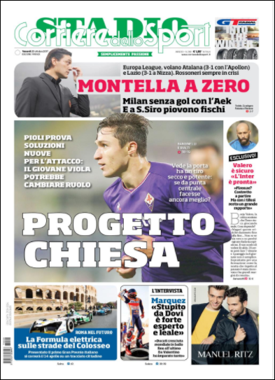Queste le prime pagine dei quotidiani di Corriere dello Sport, Corriere dello Sport Stadio, Qs-La Nazione, Tuttosport e Gazzetta dello Sport in edicola questa mattina:
