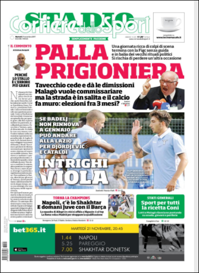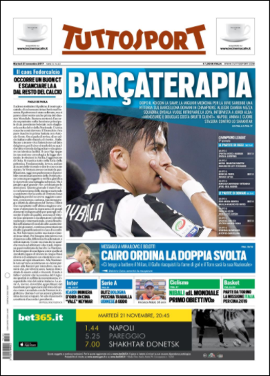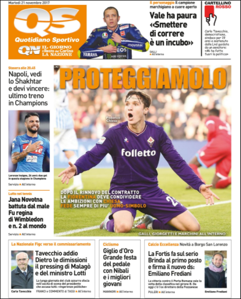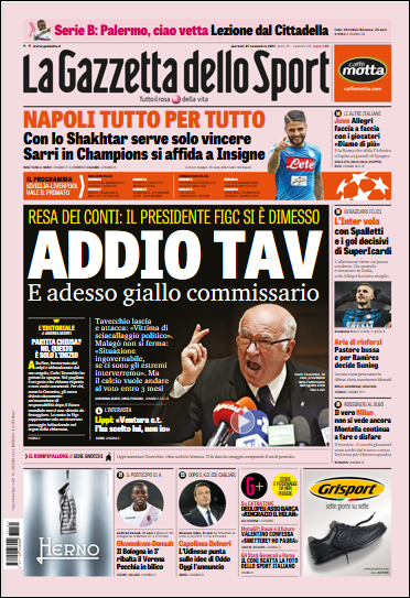 Queste le prime pagine dei quotidiani di Corriere dello Sport, Corriere dello Sport Stadio, Qs-La Nazione, Tuttosport e Gazzetta dello Sport in edicola questa mattina: