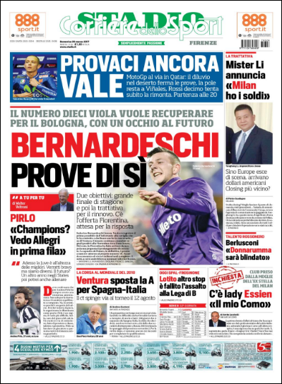 Queste le prime pagine dei quotidiani di Corriere dello Sport, Corriere dello Sport Stadio, Qs, Tuttosport e Gazzetta in edicola questa mattina: