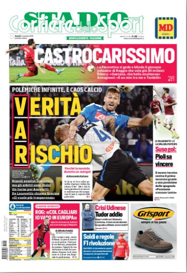 Queste le prime pagine dei quotidiani di Corriere dello Sport, Corriere dello Sport Stadio, Tuttosport e Gazzetta dello Sport in edicola questa mattina: