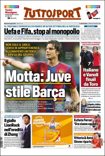 Quotidiani: le prima pagine di Qs, Gazzetta, CorSport, Stadio e Tuttosport in edicola questa mattina, martedì 28 maggio 2024