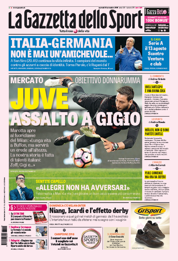 Queste le prime pagine dei quotidiani di Corriere dello Sport, Corriere dello Sport Stadio, Qs, Tuttosport e Gazzetta in edicola oggi: