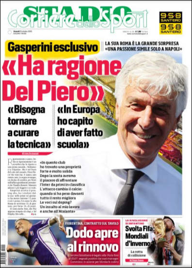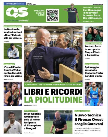Quotidiani: le prime pagine di Qs, CorSport, Stadio, Gazzetta e Tuttosport in edicola questa mattina, venerdì 10 ottobre 2025