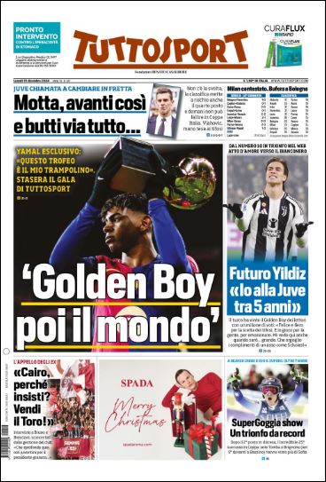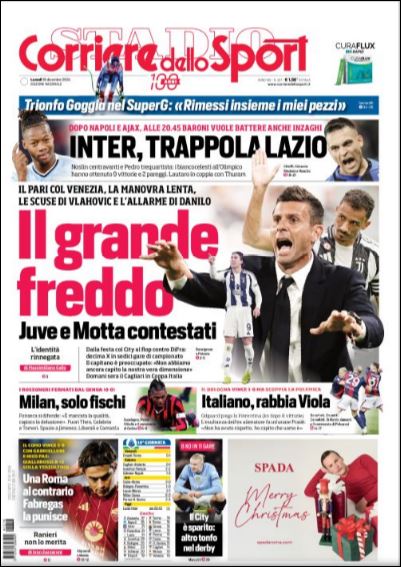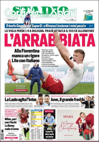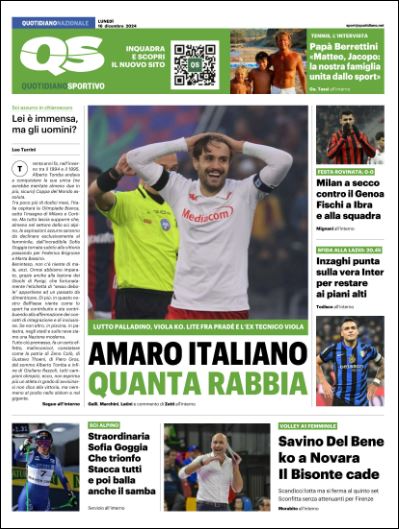 Queste le prime pagine di Qs, Gazzetta, CorSport, Stadio, CorFio e Tuttosport in edicola questa mattina, lunedì 16 dicembre 2024