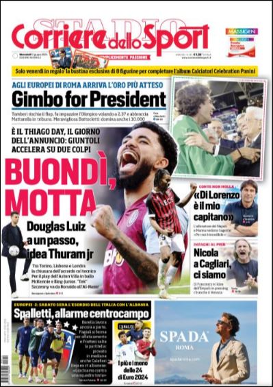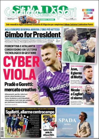 Queste le prime pagine di Qs, Gazzetta, CorSport, Stadio e Tuttosport in edicola questa mattina, mercoledì 12 giugno 2024