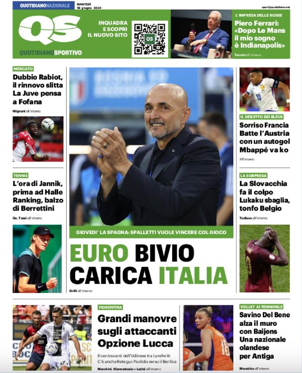 Queste le prime pagine di Qs, Gazzetta, CorSport, Stadio e Tuttosport in edicola questa mattina