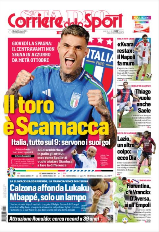Quotidiani: le prime pagine di Qs, Gazzetta, CorSport, Stadio e Tuttosport