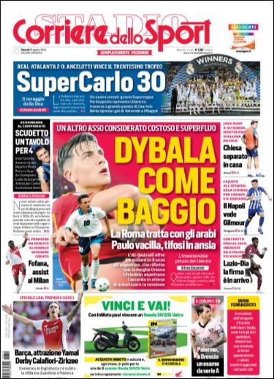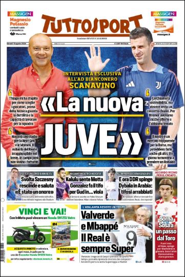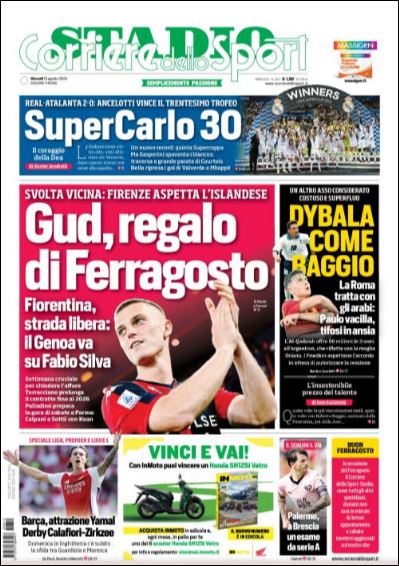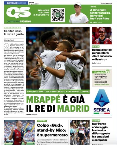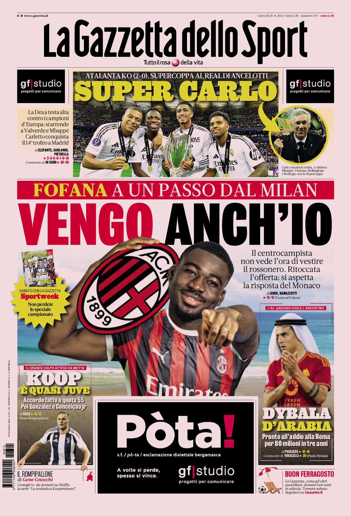 Queste le prime pagine di Qs, Gazzetta, CorSport, Stadio e Tuttosport in edicola questa mattina, giovedì 15 agosto 2024