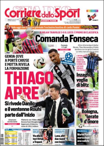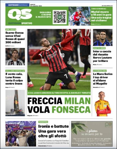 Queste le prime pagine di Qs, Gazzetta, CorSport, Stadio e Tuttosport in edicola questa mattina, sabato 28 settembre 2024